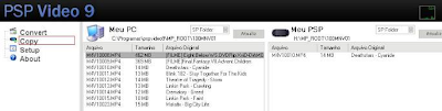 copy" mas certifique-se que o psp esta conectadoao pc. A lista da direita são os vídeo que você converteu, e a lista da esquerda são os vídeos que você possui no PSP.